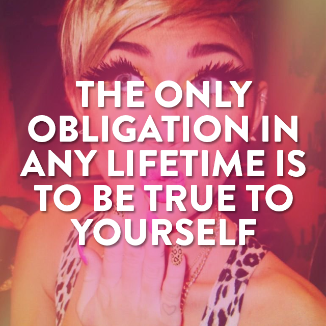 Well said, Palm Beach Tan. The only obligation in any lifetime is to be true to yourself.